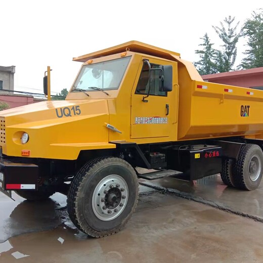 载重15t 本车型是为适应以平巷为主、或小坡度的矿井设计的,整体车架,后桥驱动,前轮转向。整车以标准载重汽车底盘为主体,采用8mm+8mm+6mm三层铆焊车架,抗扭强度大,使用寿命长,后桥减震弹簧为20mm主减加18mm副减,车厢采用匀质钢板,底板为16mm+10mm双层钢板焊接,抗冲击力强。侧板采用10mm钢板参照矿井实际工况改造。选用陕汽法士特大八档变速箱,安全可靠,配锡柴240马力发动机;变速幅度大,抵挡扭矩大,牵引力强,速度快运转。驾驶室采用6mm钢板整体下沉式单人豪华驾驶室,整体视线好,结构坚固操控舒适,有效减轻驾乘人员工作强度,缓解驾乘人员紧张压抑情绪。加装水过滤系统有效降低排放;使用北方奔驰带轮边后桥,驱动力大,承载力大,抗扭强度大,制动系统采用美国进口双回路闭式系统,有效使用的安全性,使用寿命;采用气助力离合装置,轻松有效可靠;带矿安证的为全封闭液压湿式制动桥。二:基本技术参数:发动机:锡柴CA60DF3 240马力 (可选配玉柴290马力) 转速:2300r/m 大牵引力:92千牛 斗容:7.5立方/9.4立方 操作质量:10200kg外形尺寸(mm):7000*2400*2556/7200*2400*2700货箱尺寸(mm):4000*2100*850/4200*2400*950厢板离地高度:2120 mm 卸料大高度:4470 mm轮距:1850mm 轴距:4165mm通过半径:9100mm 制动距离:3500mm 变速箱:法士特八速 8JS1118 轮胎 全钢子午胎10.00-20