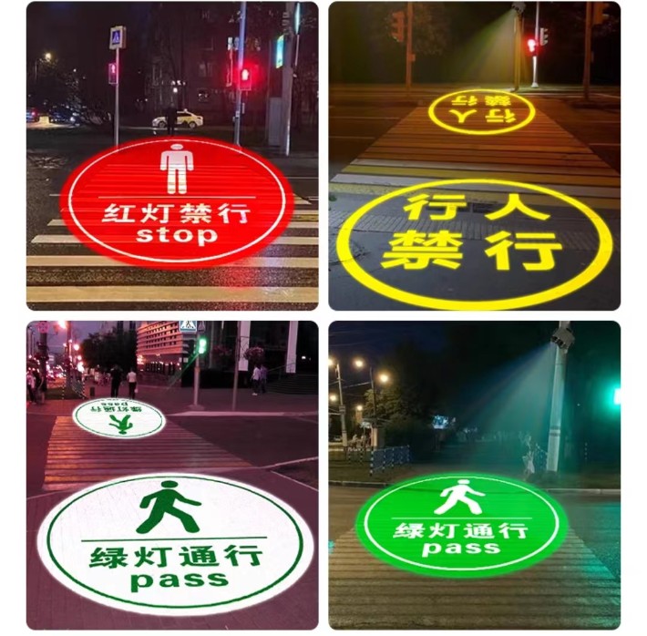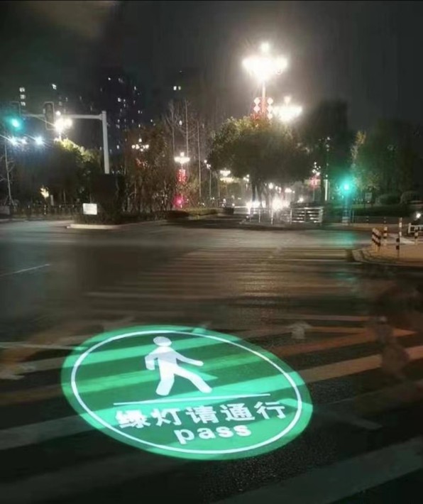 可针对交通信号传感系统,利用交通安全投影与红绿灯同步,语音系统联接播报,使交通安全,有序。
