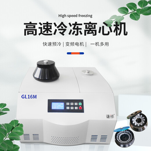 高速冷冻离心机,预冷,变频电机,一机多用,功能性强,准确操控,可适用于不同实验室,谦祥高速冷冻离心机,用途广泛适应于多种场合:医学美容,高校科研,生物研究,医药等领域,机身使用进口压缩机组,控温,为客户提供方便,可更换不同规格转子,实用快捷
