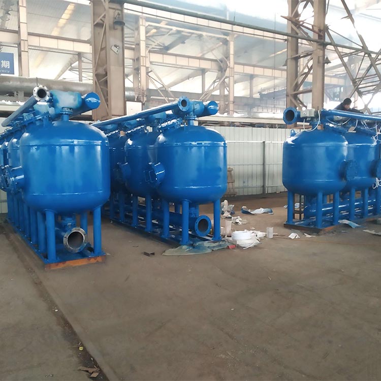浅层砂过滤器是由两个或多个标准高速砂缸单元组成,内部设有特的布水器和集水器,拥有特的双向自动冲洗阀,可实现在正常系统运行中两个标准高速砂缸逐个单的反冲洗,全自动程序控制,操作方便。