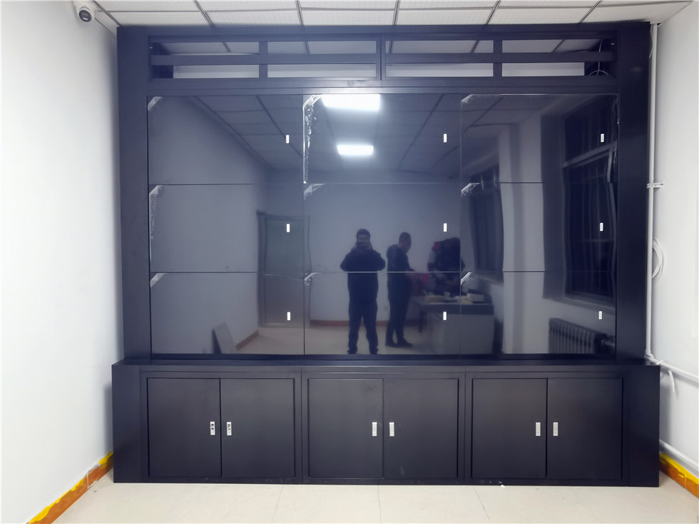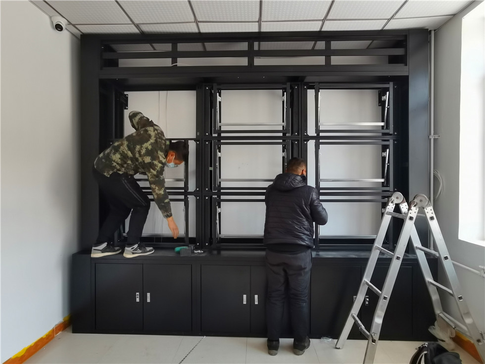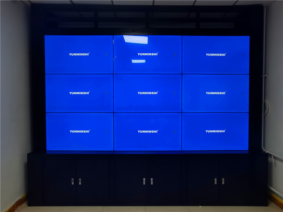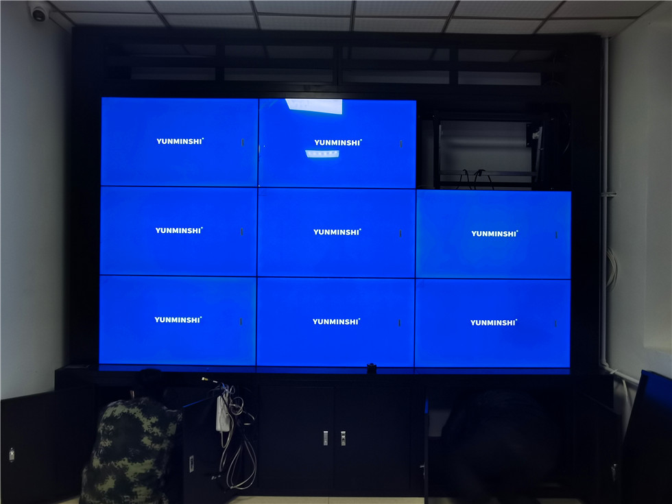 由济南液晶拼接屏企业山东云敏视商用提供产品并安装的烟台某镇云敏视46寸3.5mm拼接屏安装完毕。