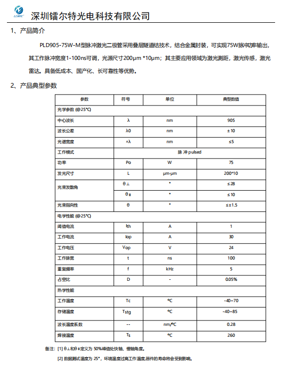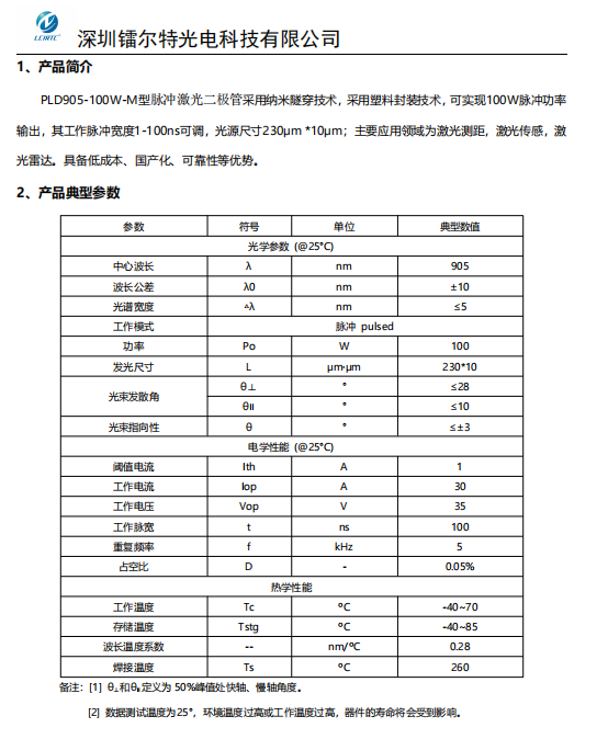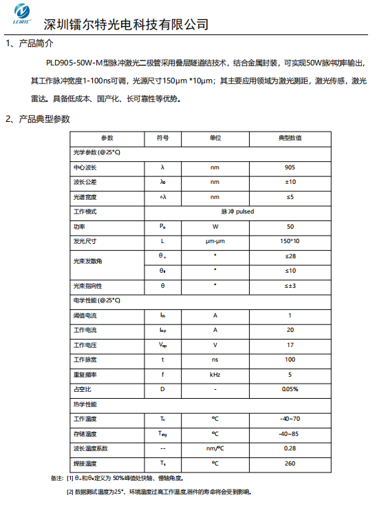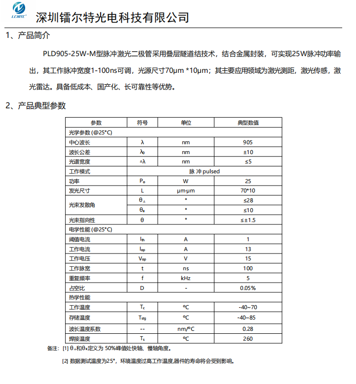 深圳镭尔特光电科技有限公司是一家为激光测距、激光传感器和激光雷达提供解决方案的厂商,覆盖各种光电子元器件的研发、生产和销售,主营产品包括各种大功率激光二极管、光纤耦合激光器、激光电子器件及组件、激光测距核心部件及组件等。我们有特的加工技术、操作熟练的员工和优良的团队协作构成的生产体系,可以提供从开发设计到原型打样再到大规模生产的一站式服务,满足不同用户的各种需求。现在镭尔特光电科技产品已经大量应用于激光测距,激光雷达等领域,被国内外的客户所采用。深圳镭尔特光电科技有限公司本着真诚、顾客至上的经营原则,在技术上追求精益求精,对制造过程实行完整的管理,对产品质量贯彻严格的控制,不断为客户提供的产品、的服务以及的光学解决方案。我们诚邀对我们公司产品感兴趣的企业与我们合作,我们必将本着真诚的合作意愿与您实现共赢。