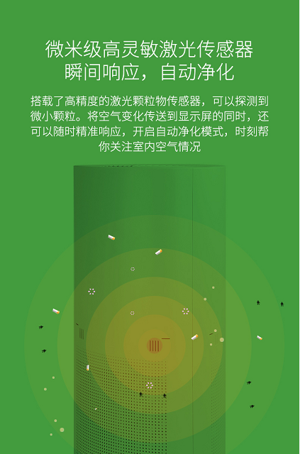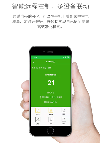 极速净化,进气量进风量加大。过滤,有效的过滤毛发、花粉、PM2.5、甲醛、甲苯等有毒气、二手烟异味气体。涂鸦智能远程手机APP操作,随时操作了解室内空气质量。具有负氧离子功能,促进人体新陈代谢。美观的外形,全面的安全防护。适用于家庭 学校 办公室 医院 宾馆 酒店 别墅。