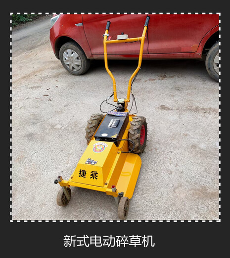 我公司生产的新式电动碎草机是根据我国的各种地形的杂草生长特性进行研究,经过几年的科技研发,克服了多种技术上的难题进而研发出的一款新式碎草机。该产品采用二次淬火工艺打造度锰钢刀片,坚固锋利快速切割,;前后都有轮子加固,方便行走,平衡性能强,不易翻车;转把可左右自由调节,适合地块狭窄的地方使用;特殊造型的外罩,根据机体轮廓的形状而特殊打造的,外型美观;配套32安锂电池使用,可实现长时间作业;而且携带方便,操控简单,是农民朋友和园林工人的好帮手。