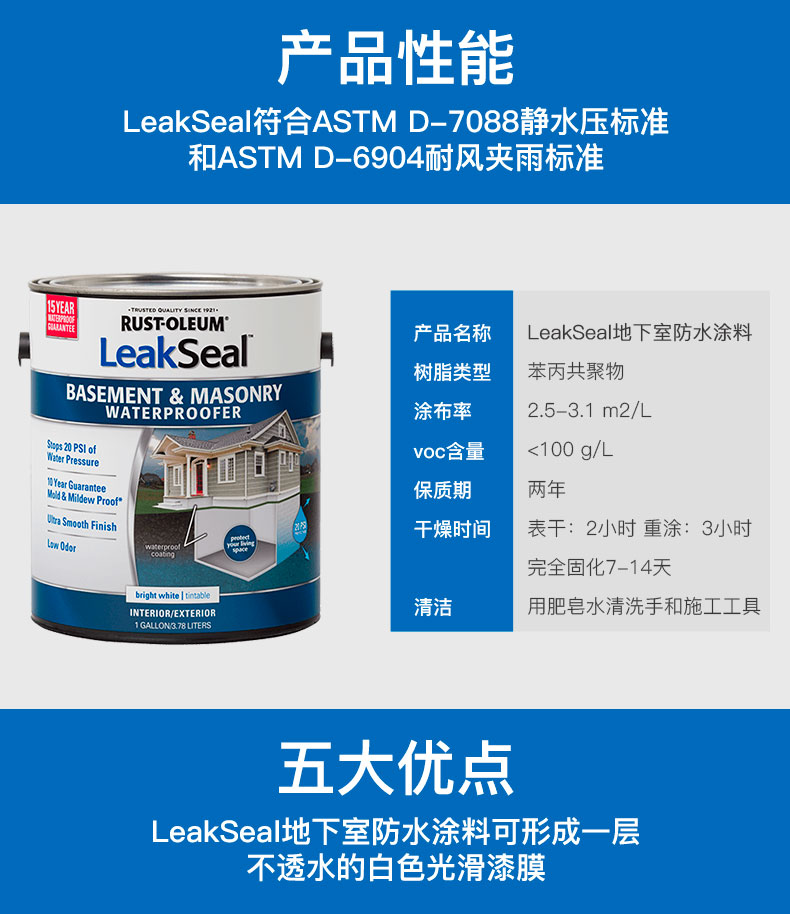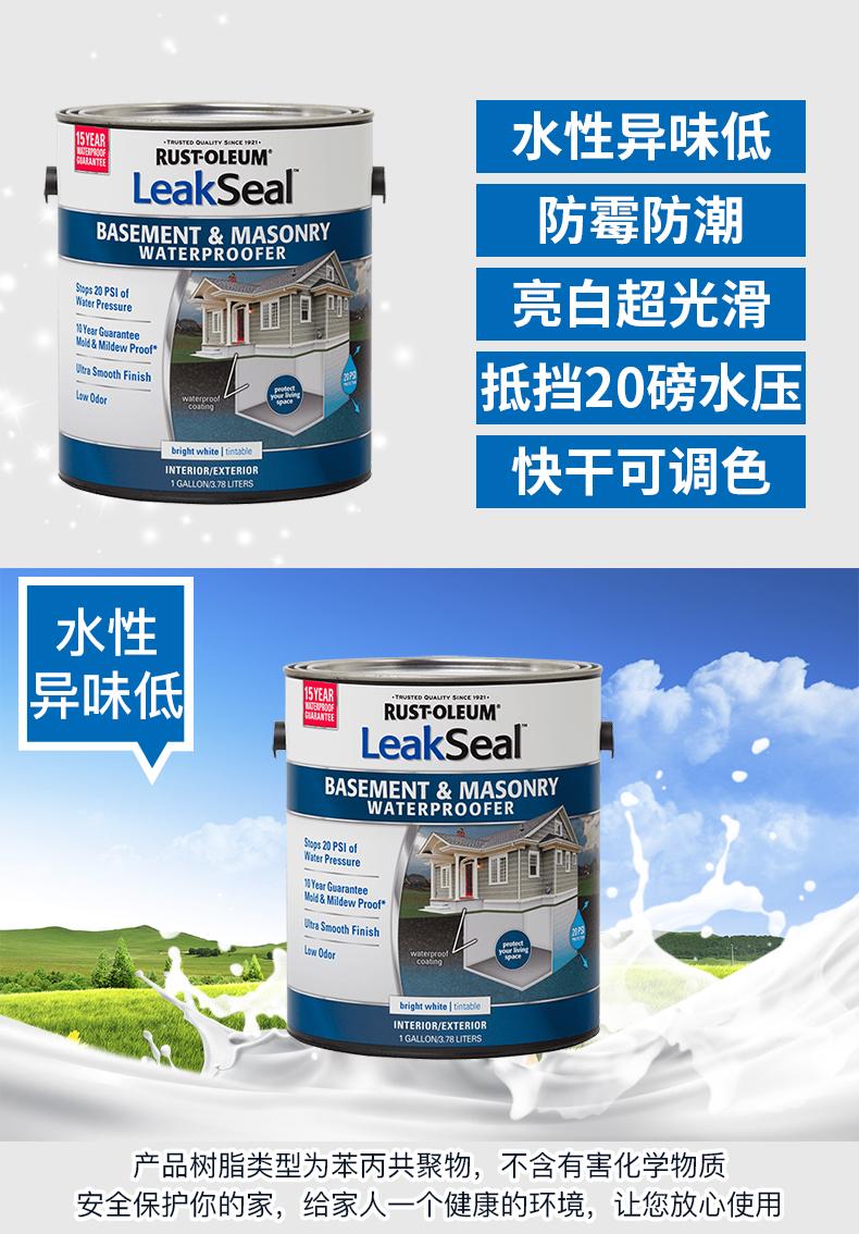 » LEAKSEAL浴室防水漆厨房地下室防霉乳胶漆厨卫美国进口墙面漆