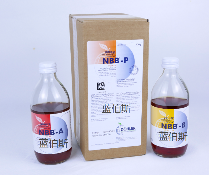 德国德乐NBB培养基系列培育基:NBB-A是琼脂、NBB-B是肉汤、NBB-C是浓汤、NBB-P是粉未。NBB-P可以配置NBB-A和NBB-B。包装规格:1、 德国德乐培育基NBB-A培育基,250ml/瓶2、 德国德乐培育基NBB-B培育基,250ml/瓶3、 德国德乐培育基NBB-C培育基,250ml/瓶4、 德国德乐培育基NBB-P培育基(粉状),300克/包 德乐NBB培育基系列培育基含有丰厚的养分物质和促进啤酒无害菌生长的物质,以及模仿啤酒无害菌生长繁衍环境的无效成分。这些特点使NBB商品二种方式中的任何一种都可以疾速牢靠的检测出任何啤酒无害菌。培育工夫的快慢取决于微生物起始细胞数、微生物种属、啤酒净化水平、微生物的生理条件等几点要素。关于较爲严重的净化,1天的培育就足够了,关于细微的净化或生长十分迟缓的微生物(如林特奈乳酸杆菌),少数状况需求几天的工夫。经历得出,爲了到达实在牢靠的检测后果,培育温度应在25-28℃,NBB-A应在培育5天当前做后果鉴定,NBB-B则需求7-12天,NBB-C需求培育4-8天。与其他检测办法相比拟(在几地利间内)和普通的保质期样品(在几周工夫内),NBB商品更疾速无效,特别是针关于细微的净化(样品中只要1个微生物)和难以检测出的啤酒无害菌。在正确的培育条件下,一切啤酒无害菌都可以在NBB上清楚的生长,而那些有害的伴生细菌将被抑制。NBB商品对无害菌的选择性使其可以适用于不同品种的样品。