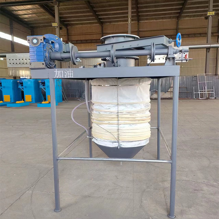 灰尘通过吸尘风机排入收尘袋或灰库。下料管和吸尘管是可以伸缩的,用于下降和上升,散装头的升降是通过卷扬机传动系统和安全装置控制松绳机构来实现的。