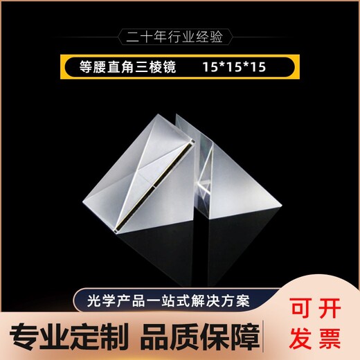 晶亮光电15*15*15全反射三棱镜镀铝折射三棱镜胶合四棱镜加工