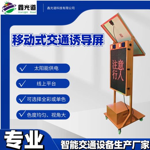 交通诱导屏,移动式,太阳能供电,P8全彩,显示区域尺寸768*768mm,100AH/12V蓄电池,120W/18V太阳能板