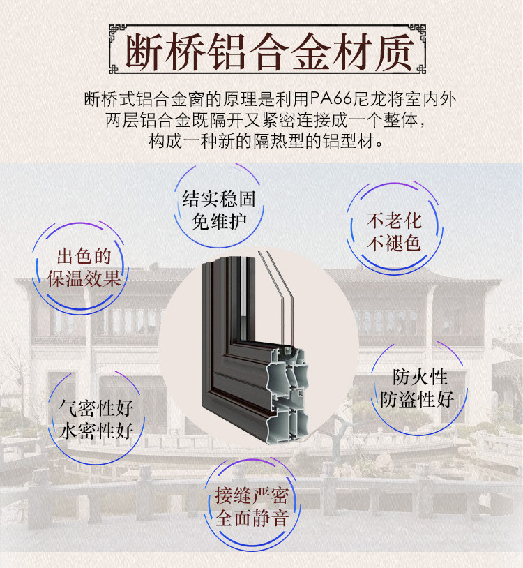 鸿森莱卡品牌70系列平开仿古门窗古建筑民宿铝合金仿古门窗供应