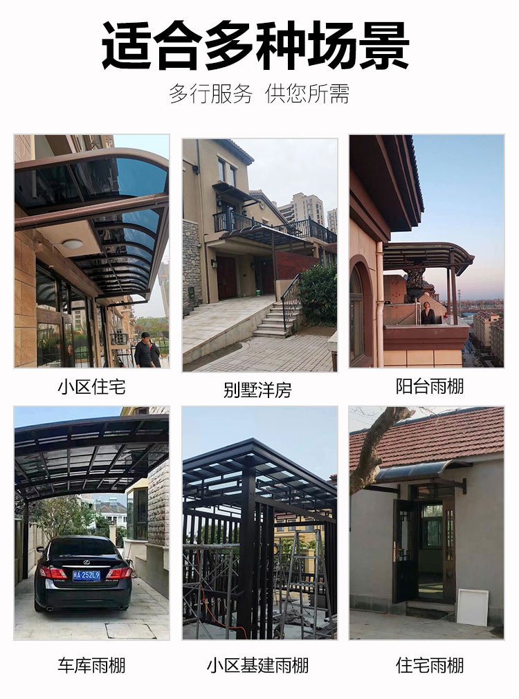 镇江系统铝合金雨棚价格新款铝合金车棚厂家批发