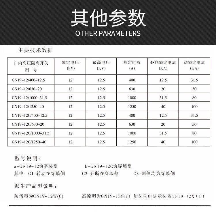 GN19-10,10C/400,630,1250型户内高压隔离开关适用于交流50Hz,额定工作电压6,10kv,额定工作电流200,630,1250A的电力系统中,作为有电压无负荷情况下的分断,闭合电路的户内开关设备使用。