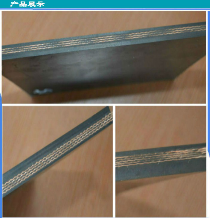 输送带,又称运输带,是用于皮带输送带中起承载和运送物料作用的橡胶与纤维、金属复合制品,或者是塑料和织物复合的制品。输送带广泛应用于水泥、焦化、冶金、化工、钢铁等行业中输送距离较短、输送量较小的场合。皮带输送机在农业、工矿企业和交通运输业中广泛用于输送各种固体块状和粉料状物料或成件物品,输送带能连续化、率、大倾角运输,输送带操作安全,输送带使用简便,维修容易,运费低廉,并能缩短运输距离, 降低工程造价,节省人力物力。带式输送机中用来承载物料并传递牵引力的部件。产品结构:本产品采用多层挂胶棉帆布作骨架,表面覆盖性能良好的橡胶材料,经硫化而制成。