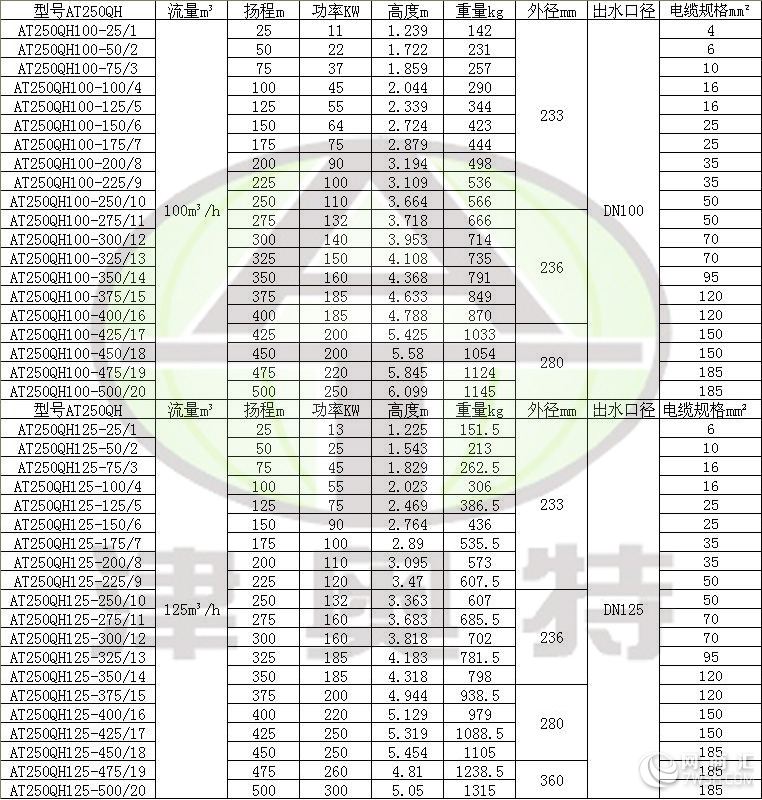 AT250QH100型深井不锈钢潜水泵参数产品概述