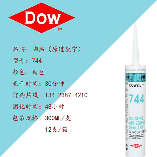 道康宁Dow Corning744白色单组份、非流动性、湿度固化RTV密封胶。无腐蚀性,室温表干迅速,粘结力强。
