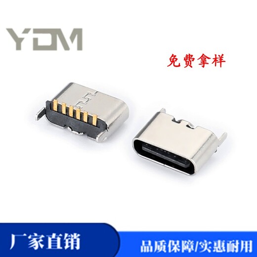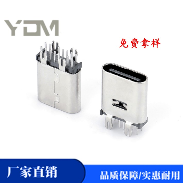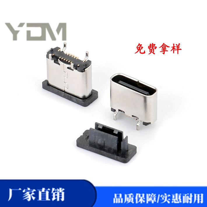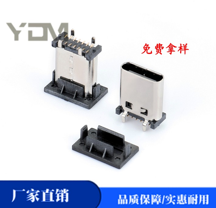 超短体5.0mm Type-C 6P立贴母座 不露铜 简易式Type-C快充接口