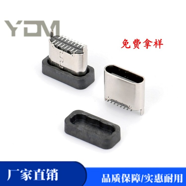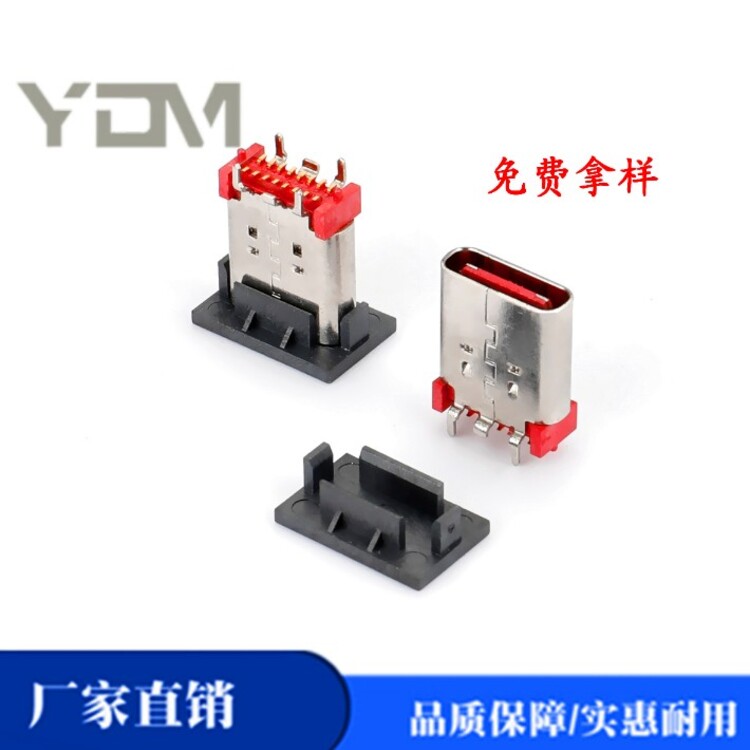 Type-C14P立式母座180度直立式SMT四脚插板H10.0立贴接口