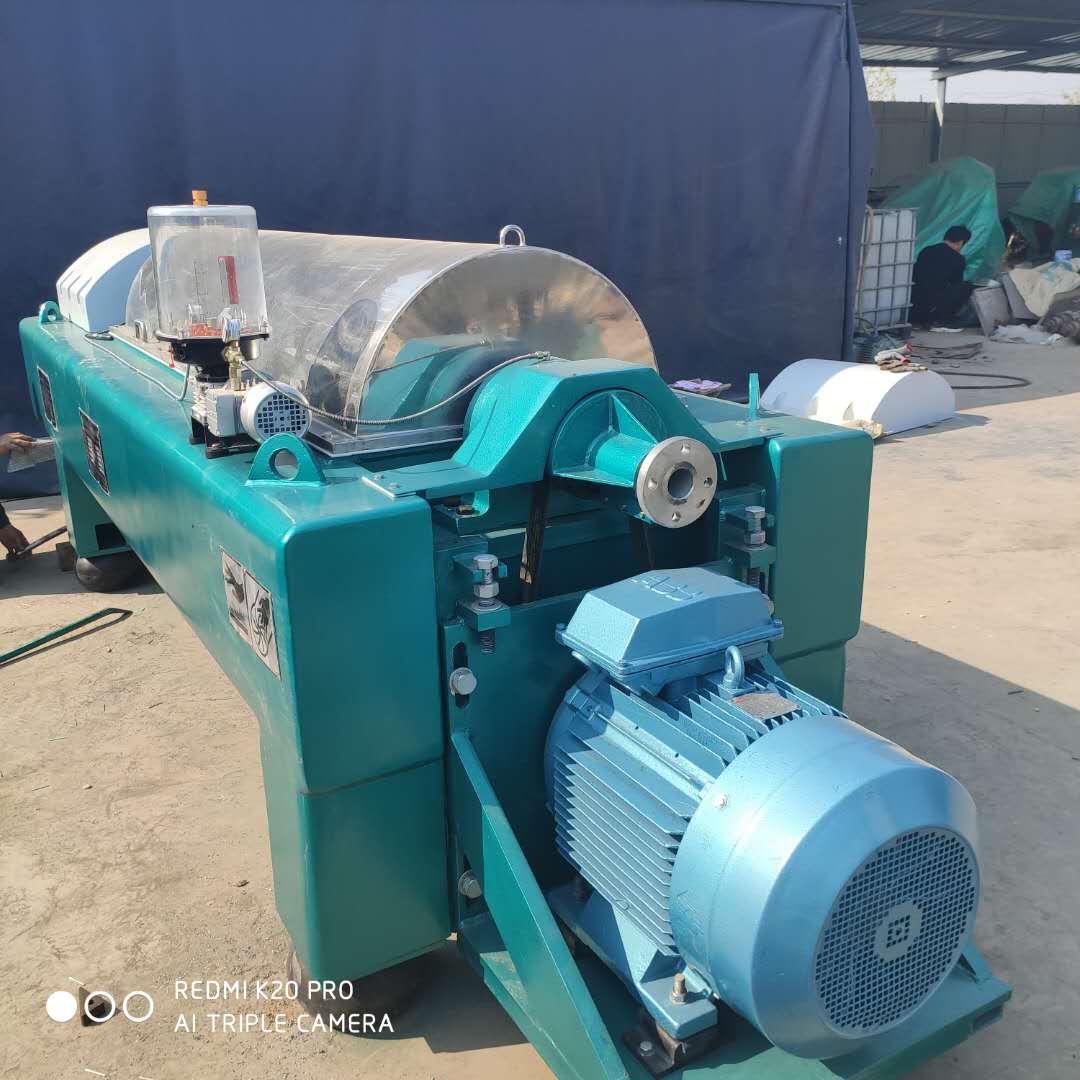 离心机工作原理为:转鼓与螺旋以一定差速同向高速旋转,物料由进料管连续引入输料螺旋内筒,加速后进入转鼓,在离心力场作用下,较重的固相物沉积在转鼓壁上形成沉渣层。输料螺旋将沉积的固相物连续不断地推至转鼓锥端,经排渣口排出机外。较轻的液相物则形成内层液环,由转鼓大端溢流口连续溢出转鼓,经排液口排出机外。本机能在全速运转下,连续进料、分离、洗涤和卸料。具有结构紧凑、连续操作、运转平稳、适应性强、生产能力大、维修方便等特点。适合分离含固相物粒度大于0.005mm,浓度范围为2-40%的悬浮液。广泛用于化工、轻工、制药、食品、环保等行业。