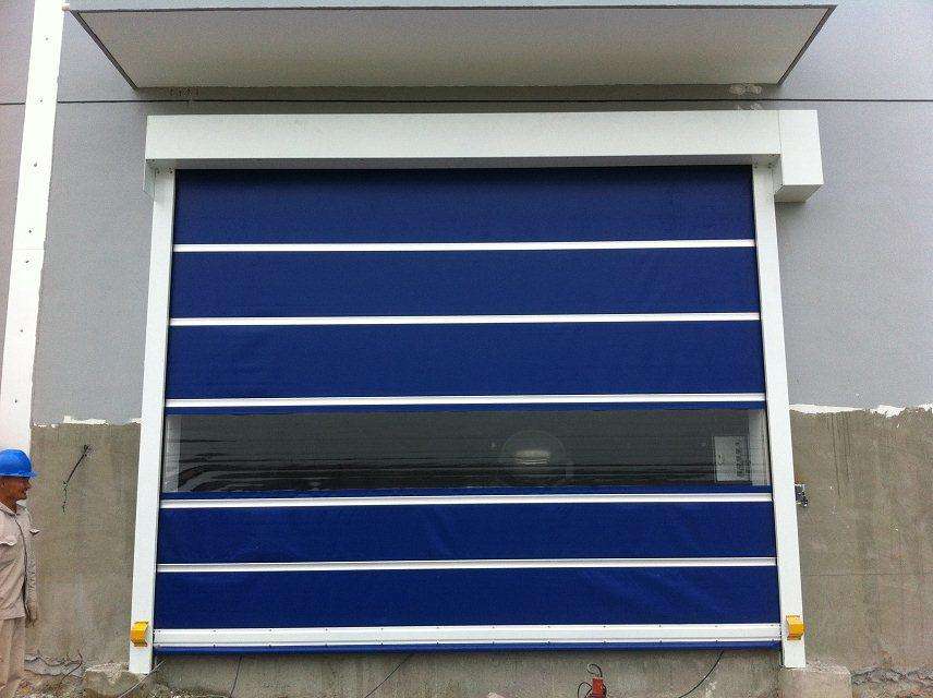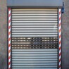 工作过程:由开门传感器提供触发信号给控制系统,控制系统根据卷门的当前位置发出指令给变频器,启动驱动电机使门帘上升,车辆行人通过后门帘自动下降,关闭通道,直到下一个开门信号再次打开。顾名思义,卷门升降速度非常快,不能像钢制卷闸门一样直接启动停止,一般需要变频器来控制电机的转速。上升时越快越好,快到位时(20cm左右)需要有一个减速缓冲停止过程,以防止撞击轨道,防止夹人,降低噪音,这也是衡量卷门性能好坏的一个标准。
