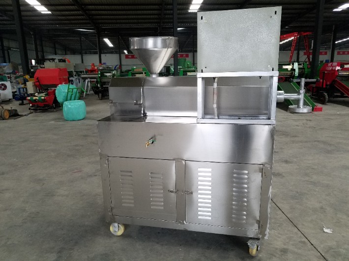红薯粉条机由于生产时只需将淀粉和水按比例混合后即可生产,免除了“调浆、打糊”等繁琐工序,减轻了劳动强度,且不是采用高功率转速成熟方式,充分保护了淀粉的物理性能,解决了单纯螺杆挤出式粉条机干浆下料,淀粉熟化不均匀,产品不耐煮,下锅糊汤的缺点。