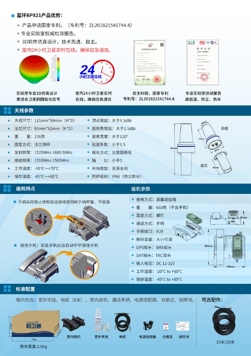 欧星卫星电话室内座机_和卫通蓝环BP821