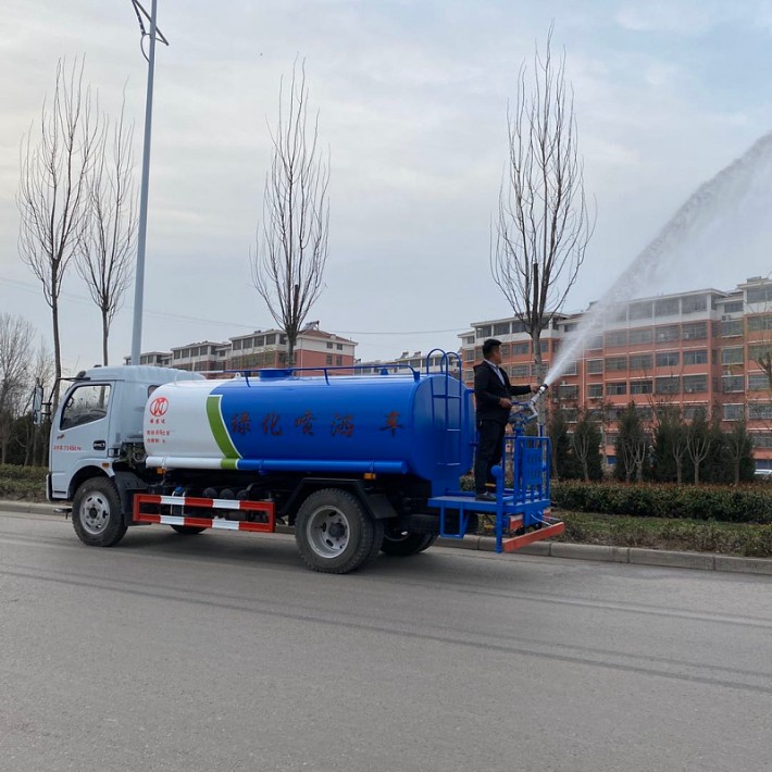 洒水车前喷头位置较低,靠近地面,喷洒压力较大,可用于冲洗路面;后喷头位置较高(洒水车后喷头一般左右各安装一个),洒水面较宽,可用于公路施工洒水,使用后喷头时,应将前喷管关闭;使用可调喷头洒水时,洒水宽度可根据需要调整。洒水宽度越宽,中间重叠量越少,洒水密度越均匀。