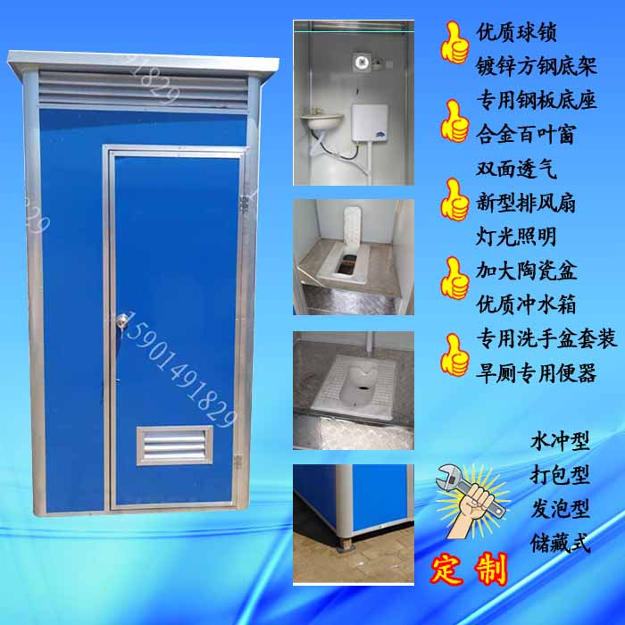 技术特点:厕所使用符合人们传统心理习惯;耐腐蚀性强、易保洁、好维护、环保卫生;美观大方,移动方便