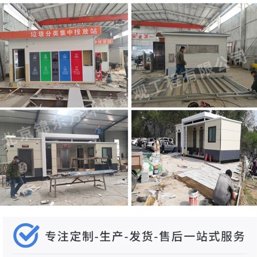 三、厕间内配置 1、厕间内标准配套:厕具/小便斗、照明灯、排气扇、衣帽钩、扶手、手纸架、化妆镜、纸篓、有、无人标志锁、门锁、各种标志牌。 2、每一大便位配送2只粪便储运周转桶,每一小便位配送2只小便储运周转桶 3、选购用品:电暖风机、空调器、净手机 注:该公司其他产品:各类环保、移动厕所,各类轻钢活动房、商亭、岗亭、门卫房、警亭、轻体房等。