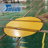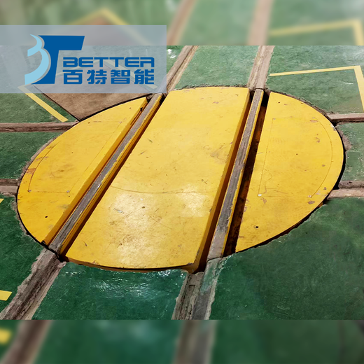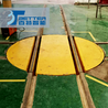 转盘是安装在基础地坑内,用于承载货物或行走设备在轨道上走行时的换向(转线)设备。原理:转运车运行至电动旋转平台上,手动或自动旋转电动旋转平台,与垂直轨道对接,使转运车可沿垂直轨道运行,实现90度转弯,适用于装备生产线的环形轨道、交叉轨道等场合。转盘系统运行平稳,轨道对接精度准确,也可实现全自动电器控制。转盘为圆形地坑式布置,本转盘盘面与地面齐平。