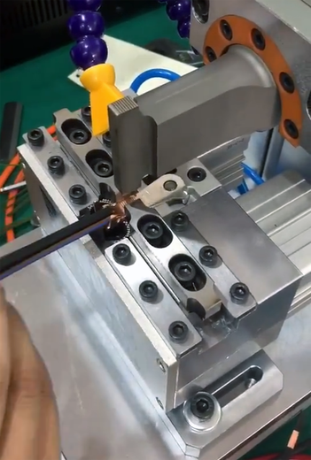 超声波点焊铜线与铜接线片时,需要定制焊接工装,用来固定铜接线片,再将大平方铜线放在位置后,设备自动完成压接。
