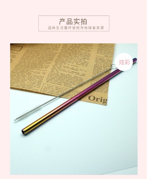 » CHEZD304不锈钢吸管加长弯头创意家用饮料奶茶吸管粗金属吸管彩色