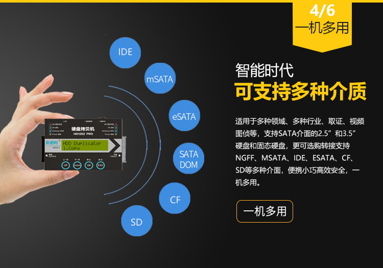 支持界面: 可透过转接板支持IDE/ESATA/MSATA/NGFF/IVDR等接口硬盘拷贝