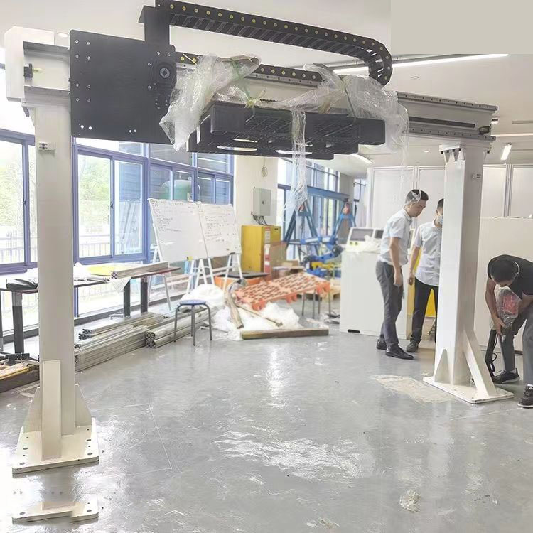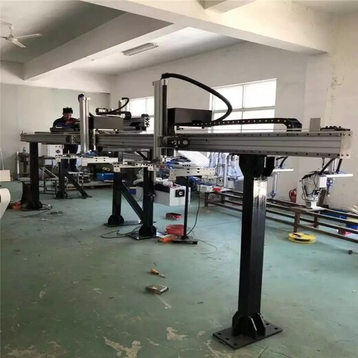 两轴桁架机械手这是一种建立在直角X、Y坐标系基础上调整工件工作位置,或实现工件轨迹运动等功能的全自动工业设备。龙门两轴桁架机械手是将机械手安装在龙门吊上,具有工作范围大、抓取重物能力强等特点。◆无需人工参与,提高码垛重复精度和精度,确保码垛效率。◆同时使用码垛机可以减少人员开支,节约企业成本。