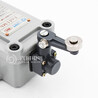行程开关,位置开关(又称限位开关)的一种,是一种常用的小电流主令电器。利用生产机械运动部件的碰撞使其触头动作来实现接通或分断控制电路,达到一定的控制目的。通常,这类开关被用来限制机械运动的位置或行程,使运动机械按一定位置或行程自动停止、反向运动、变速运动或自动往返运动等。