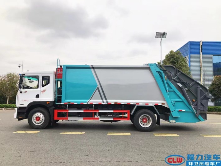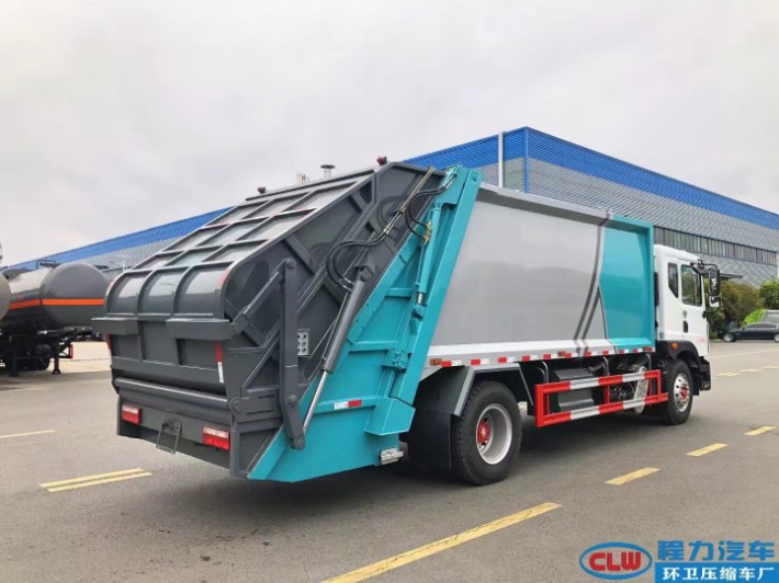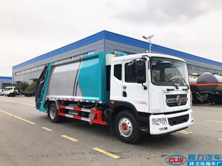 东风D9单桥十八立方压缩垃圾车,气囊座椅,康明斯230发动机,陕齿小八档变速箱,10吨级德勒后桥,1000钢丝胎,箱体容积18立方,采用边五底五钢板制作,机器人自动化焊接工艺,皖液双联泵,威森博乐多路阀,江苏飞达油缸,尾部大落地斗翻转机构,新程力公告型号CL5185ZYS6HQ。