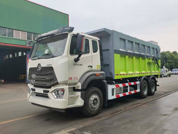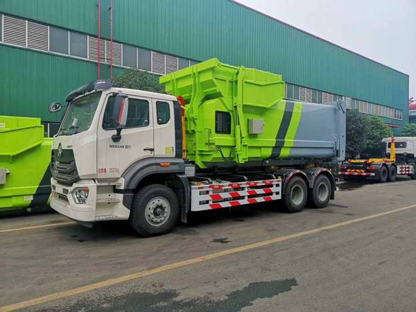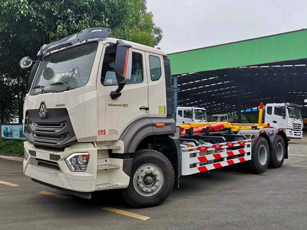 湖北新中绿汽车有限公司是生产,销售勾臂式垃圾车,移动垃圾压缩箱,勾臂车垃圾箱的一家环卫垃圾车厂家。公司地处湖北随州。成立二十几年,拥有成熟的生产经验,的生产设备,与时俱进的内部管理和完善的售后服务。作为该公司的一名工作人员,深表荣幸。今天,我为大家带来了一款大型环卫勾臂式垃圾车——25吨重汽豪瀚勾臂式垃圾运输车。