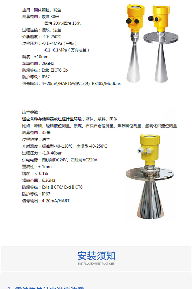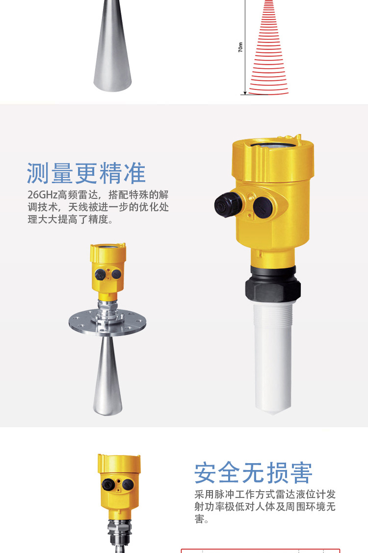 雷达液位计化工防腐物料位计水位高频石灰粉料智能喇叭口探测仪