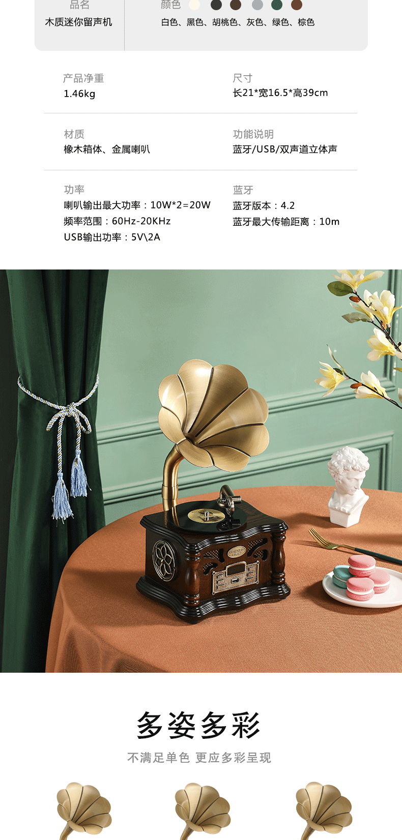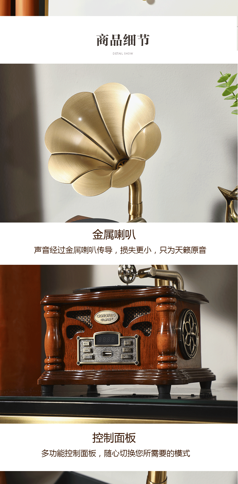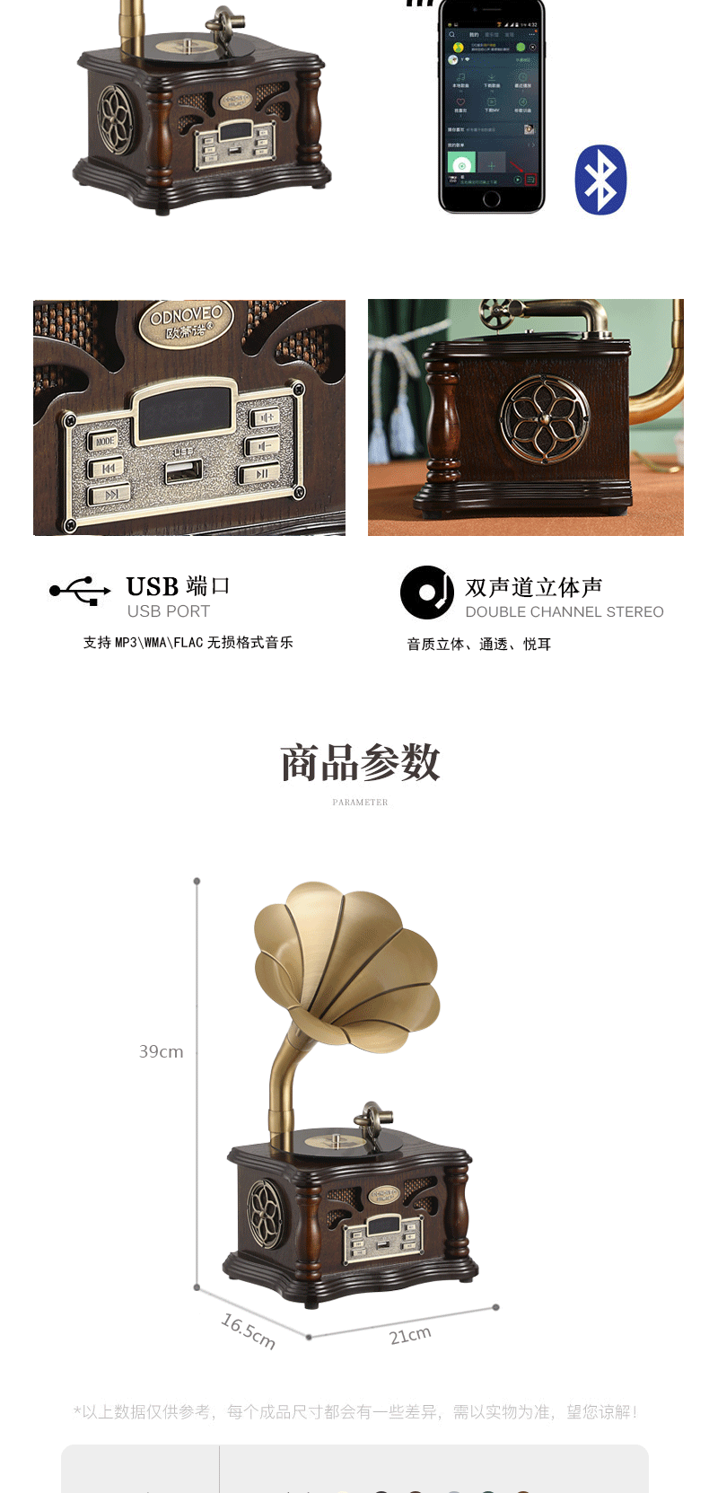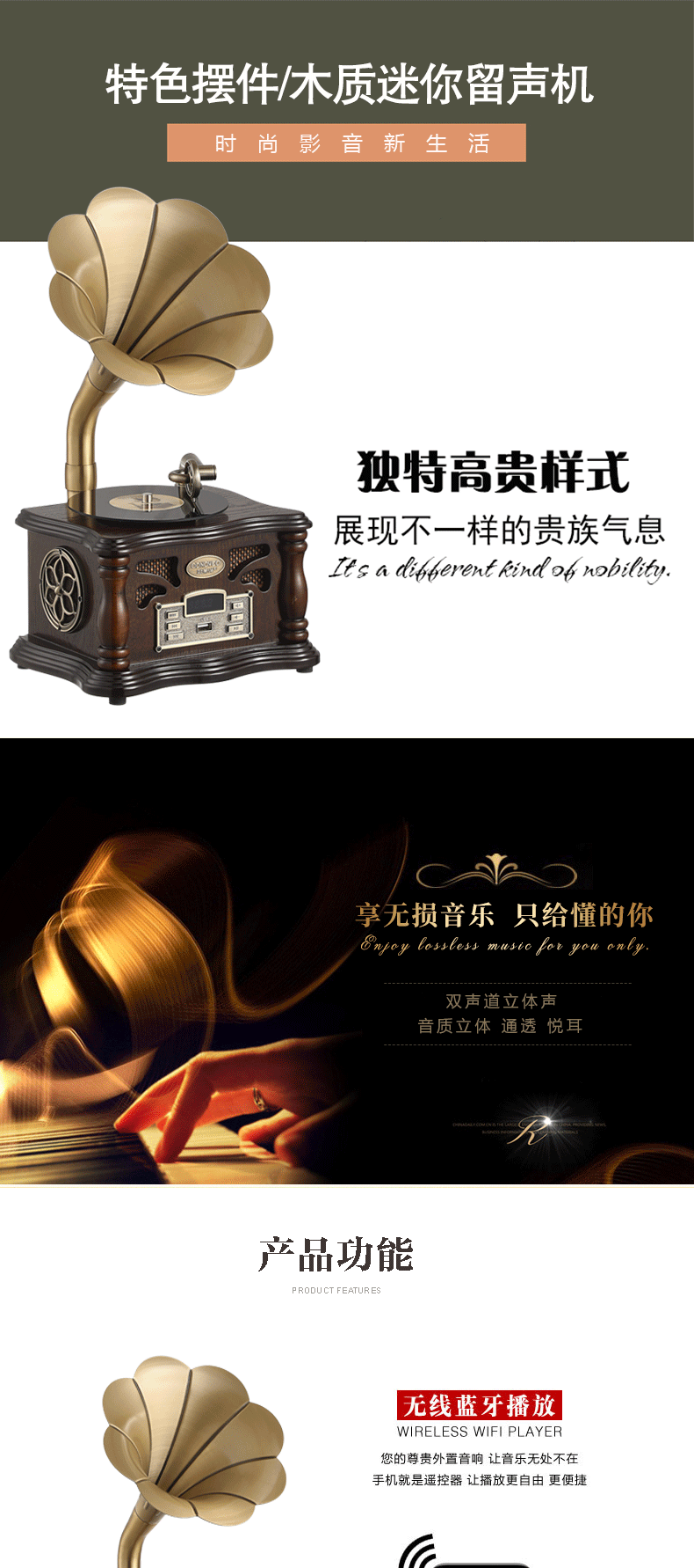 欧蒂诺新中式迷你留声机蓝牙音响USB送礼生日礼物摆件