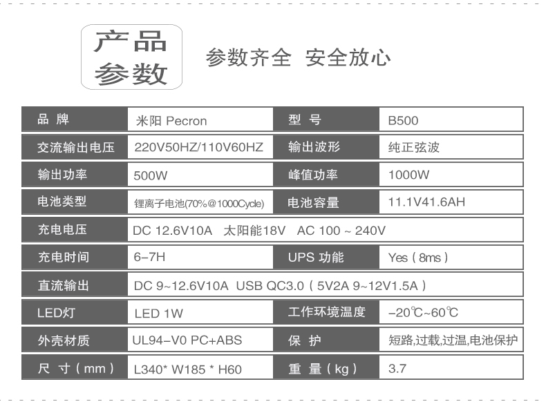 产品名称:220V移动电源米阳B500便携式式交直流移动电源