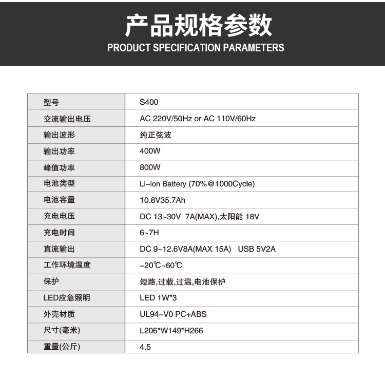 交流输出电压:AC 220V/50HZ or AC 110V/60HZ