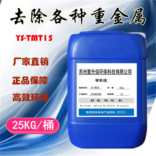 有机硫tmt15是液体金属沉淀剂。它可以有效沉淀金属离子,使废水中的金属离子浓度降低。该产品常作为抛光步骤,用于传统金属沉淀工艺(如氢氧化物沉淀)之后。与沉淀高浓度金属离子的传统技术相比,它被认为是可供选择的方法之一。