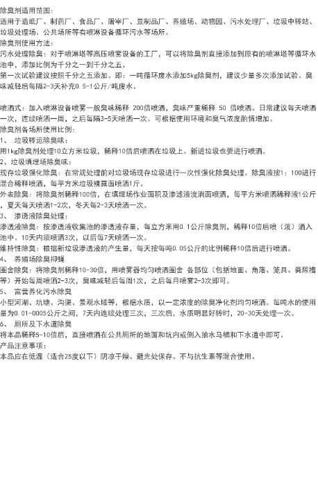 除臭剂喷涂车间油漆废水处理除味剂工业废水畜牧业去味剂