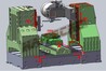 1.机床由底座、两个定柱立柱、两个主轴箱体(一个立式箱体、一个卧式箱体)、一个回转工作台、一侧各有一组动柱卧式镗铣加工单元与立式铣镗加工单元组成,基础件全部使用度铸铁经过消失模铸造成型技术,内部金相组织稳定,确保基础件的高稳定性。