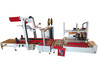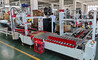 这款包装流水线由:封箱机,捆扎机,动力滚筒线架及角边封箱机几大模块组成,接通电源起源,装好的纸箱产品即可由封箱机进入自动完成封上下胶,自动捆扎,自动转向,封四角等动作,全程无需人工干预,组成无人化封箱打包一体流水线。而且还可以拆开来单使用,非常方便。对于不想进行角边封的,可以关闭角边功能即可。