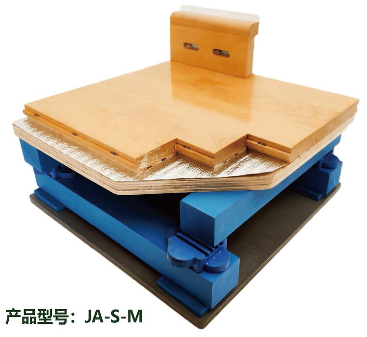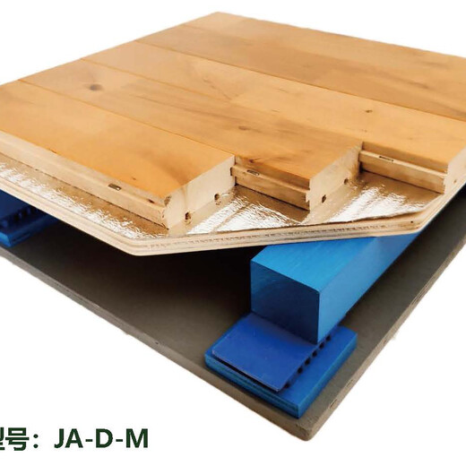 面板:面板可采用实木复合或实木板。树种选用硬木,比较普遍使用的有硬枫木,水曲柳,柞木,榉木等等。由于枫木是长纤维树种,坚韧性好,硬度也适中,且在比赛以及电视转播中的观看效果佳,因此世界上绝大多数体育馆的面板均是采用枫木来制作。面板含水率不得超过当地平衡含水率。国产板的尺寸大多数为22mm厚,带凹槽及凸缘。