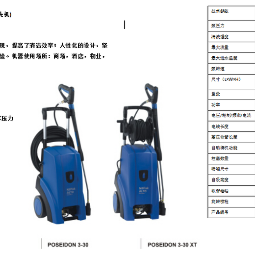 网页价格只为发布需求所用,非产品实时出售价格,具体参数及价格请致电我司获取实时报价 上海布劳得自动化科技有限公司负是力奇集团在大中华区域的全资直属销售代理公司,代理全国各地区清洁设备(工业吸尘器、洗地机、扫地机、石材翻新机、吸尘吸水机)的销售和售后服务工作,我们相信您购买我们的产品不是一笔买卖的结束,而是我们长期合作的开始! www.cfm-china.com.cn上海布劳得自动化科技有限公司负是韩国CHCA集团在大中华区域的全资直属销售代理公司,代理全国各地区除尘设备(粉尘防爆安全型除尘器、除味除尘器、除烟除尘器、湿式除尘器、干式除尘器、油雾净化除尘器)的销售和售后服务工作,我们相信您购买我们的产品不是一笔买卖的结束,而是我们长期合作的开始! NILFISK ALTOPOSEIDON 3-30 (商业用高压冷水清洗机) 产品特征:商业用户日常使用的佳选择商业用高压冷水清洗机,的性能表现,提高了清洁效率;人性化的设计,坚固耐用的机身,给您日常清洁的超值体验。机器使用场所:商场,酒店,物业,保洁公司及小型建筑场地。 POSEIDON 3·直立式紧凑型设计·黄铜泵头防腐耐用·不锈钢柱塞,坚固可靠·ERGO人体工程学配件系统,减轻工作压力·清洁剂混入系统,方便快速·可卸式清洁剂箱,便于清洁·动力强劲,轻便耐用 ■价格说明■ 1.网页价格:网页所指示的价格可能是商品的销售指导价或该商品的曾经展示过的销售价等,并非实时报价,仅供参考。 2.商品规格配置:商品页面所提供的规格配置因性能改善随时会有变更,恕不另行通知,如需获取准备的规格配置及报价可致电我司获取新实时报价单。 3.本产品质保期为一年(注:耗材以及人为损坏的除外)。质保期满后终身有偿维修! |