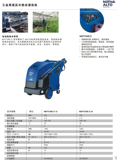 网页价格只为发布需求所用,非产品实时出售价格,具体参数及价格请致电我司获取实时报价 上海布劳得自动化科技有限公司负是力奇集团在大中华区域的全资直属销售代理公司,代理全国各地区清洁设备(工业吸尘器、洗地机、扫地机、石材翻新机、吸尘吸水机)的销售和售后服务工作,我们相信您购买我们的产品不是一笔买卖的结束,而是我们长期合作的开始! www.cfm-china.com.cn上海布劳得自动化科技有限公司负是韩国CHCA集团在大中华区域的全资直属销售代理公司,代理全国各地区除尘设备(粉尘防爆安全型除尘器、除味除尘器、除烟除尘器、湿式除尘器、干式除尘器、油雾净化除尘器)的销售和售后服务工作,我们相信您购买我们的产品不是一笔买卖的结束,而是我们长期合作的开始! 电加热高压清洗机 电加热高压清洗机 特征:NEPTUNE E 系列秉承了NEPTUNE系列机型低成本、能和强劲清洁的特点。专为需要高压热水且无废气排放的工业场所而设计,提供了电气加热的热水能源,安全、低成本、零排放。·纯陶瓷柱塞,耐磨持久,更抗腐浊·1450转低转速电机,噪音低,寿命是普通电机的2倍·特的锅炉快速保养设计降低维护费用·集中式控制面板,方便易用,一目了然·ERGO人体工程学配件系统,程度减轻工作疲劳·环保型无排放设计,更安全可靠 标准配件ERGO 1000标准喷枪,ERGO 快速接头套件,1020mm金属枪杆,10米高压软管,TP喷嘴 ■价格说明■ 1.网页价格:网页所指示的价格可能是商品的销售指导价或该商品的曾经展示过的销售价等,并非实时报价,仅供参考。 2.商品规格配置:商品页面所提供的规格配置因性能改善随时会有变更,恕不另行通知,如需获取准备的规格配置及报价可致电我司获取新实时报价单。 3.本产品质保期为一年(注:耗材以及人为损坏的除外)。质保期满后终身有偿维修! |