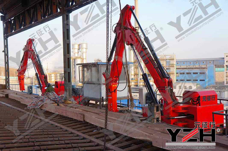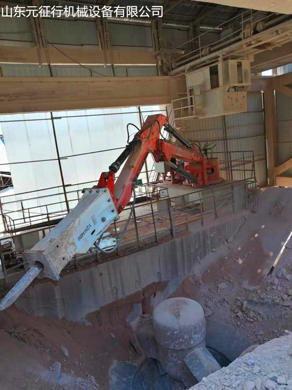 固定式液压机械臂,主要安装于工业厂矿、井下、铸造冶金炉口等区域,用于对大块坚硬岩石、矿石破碎抓取以及钢包炉衬清渣拆除作业