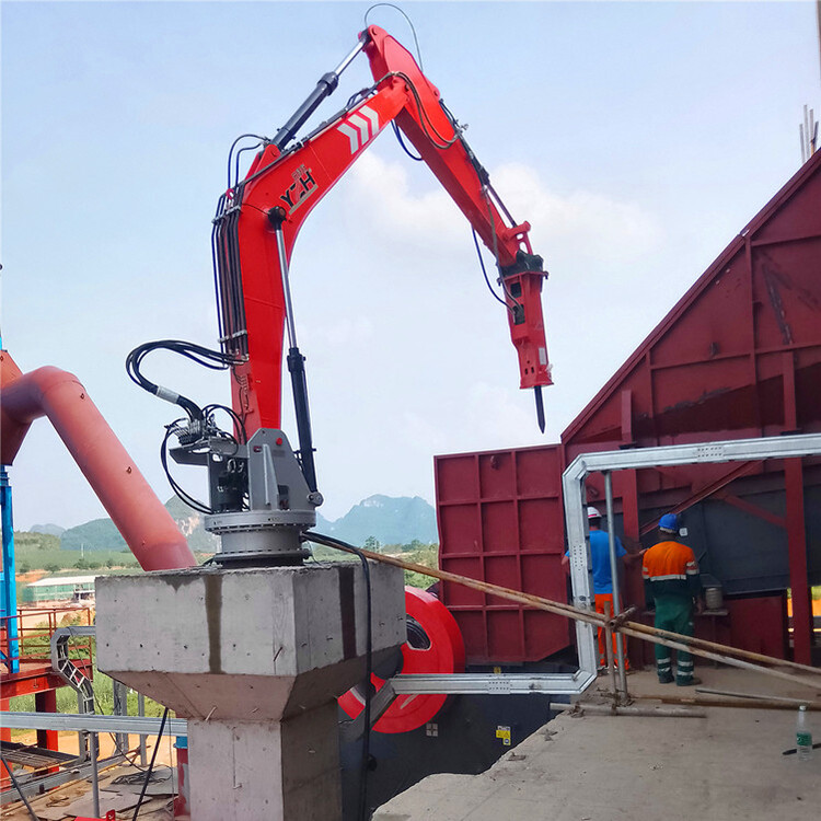 固定式破碎机是相对于移动破碎机而言的,又叫固定式破碎站。本产品为固定式全液压破碎机,主要用于:冶金、矿山、化工等行业地面现场或井下溜井口格筛处,对大块矿石进行二次破碎,以便运输及提升。该产品是根据破碎现场实际工况自行研研制开发,采用国际技术,选用进口液压锤,通过液压—气动控制,破碎能力大、运行平稳、噪声低、性能可靠、操作方便,可在任何复杂工况现场连续作业,减轻工人的劳动强度,改善现场工作环境,提高工作效率,是二次破碎机械化理想设备