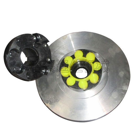 带制动盘梅花联轴器是一种应用很普遍的联轴器,也叫爪式联轴器,是由两个金属爪盘和一个弹性体组成。两个金属爪盘一般是45号钢,利用梅花形弹性元件置于两半联轴器凸爪之间,以实现两半联轴器的联接。具有补偿两轴相对位移、减振、缓冲、径向尺寸小、结构简单、不用润滑、承载能力较高、维护方便等特点,度聚氨酯弹性元件耐磨耐油,承载能力大,使用寿命长,可靠。工作稳定可靠,具有良好的减振、缓冲和电气绝缘性能。具有较大的轴向、径向和角向补偿能力。结构简单,径向尺寸小,重量轻,转动惯量小,适用于中高速场合。